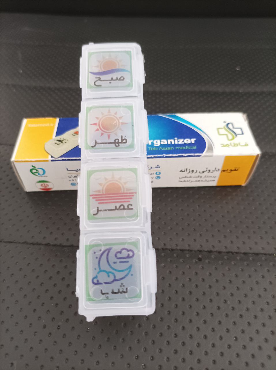 دارای ظرف داروی روزانه با بخشبندی مجزا (صبح، ظهر، عصر)